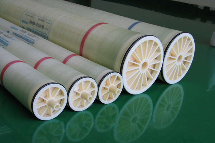 一.反滲透膜是實現反滲透的核心元件,是一種模擬生物半透膜制成的具有一定特性的人工半透膜。一般用高分子材料制成。如醋酸纖維素膜、芳香族聚酰肼膜、芳香族聚酰胺膜。表面微孔的直徑一般在0.5~10nm之間,透過性的大小與膜本身的化學結構有關。有的高分子材料對鹽的排斥性好,而水的透過速度并不好。有的高分子材料化學結構具有較多親水基團,因而水的透過速度相對較快。因此一種滿意的反滲透膜應具有適當的滲透量或脫鹽率。