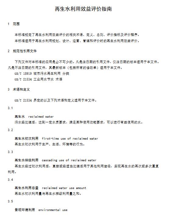 《再生水利用效益評價(jià)指南》團(tuán)體標(biāo)準(zhǔn)規(guī)定了再生水利用效益評價(jià)的相關(guān)術(shù)語定義、評價(jià)指標(biāo)及定量評價(jià)方法和程序,適用于再生水利用規(guī)劃、設(shè)計(jì)、運(yùn)營、管理和評價(jià)時(shí)的再生水利用效益評價(jià)。該團(tuán)體標(biāo)準(zhǔn)的發(fā)布,對規(guī)范再生水利用效益評價(jià)工作,指導(dǎo)再生水利用規(guī)劃、設(shè)計(jì)、運(yùn)營、管理、評價(jià),提高再生水利用效益,促進(jìn)再生水資源的合理、高效開發(fā)與利用具有積極意義。