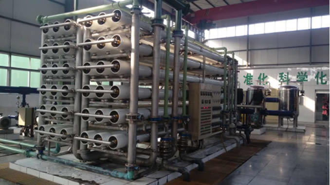 我公司為周口鄲城軟酸菌廠提供一套雙級反滲透設備,處理水量為200T/h,系統采用“自來水→原水箱→原水泵→石英砂過濾器→活性炭過濾器→阻垢劑添加裝置→保安過濾器→一級RO高壓泵→一級RO機組→一級純水箱→二級增壓泵→加堿裝置→保安過濾器→二級RO高壓泵→二級RO機組→二級純水箱→二級純水供水泵→終端用水點。”水處理工藝,保證用水品質,系統采用全自動控制,便于操作維護。