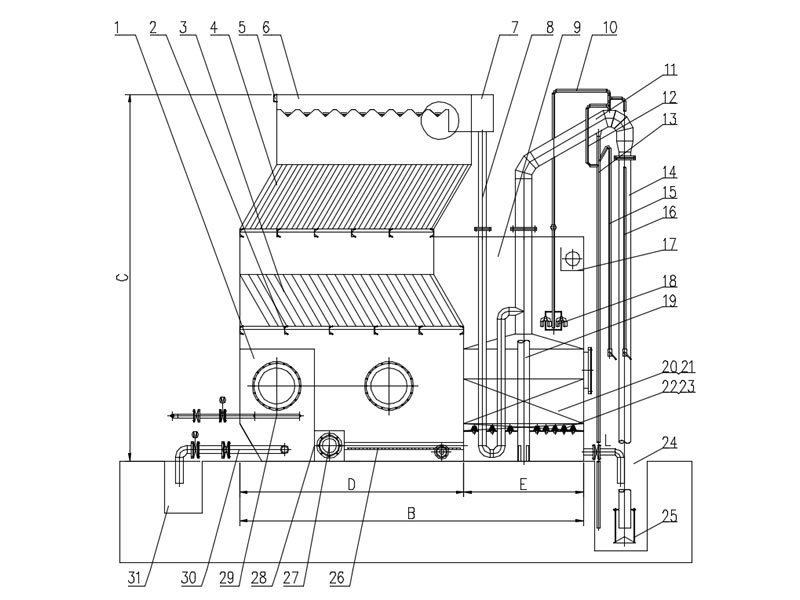 | 19 | 清水上升管 | 20 | 石英砂墊層 | 21 | 石英砂 |
