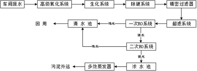 焦化廢水其極難生化,必須進行可生化性提高,常用的高級氧化技術有:電催化氧化法、臭氧催化氧化法、芬頓氧化法等。廢水的生化性提高后才能進入生化系統進行有效降解。為實現回用目的還必須增加深度處理系統,由于焦化廢水含有大量的鈣離子,所以必須進行硬度的去除工作,以防止膜系統的垢類堵塞。最終通過雙極反滲透實現水質的絕對凈化。經過兩級反滲透處理的濃縮液再經過蒸發器蒸發結晶后實現零排放的目的。